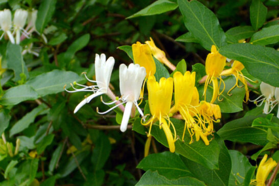 また、白と黄色の花が一つの枝に見られることから「キンギンカ(金銀花)」「キンギンカズラ(金銀葛)」の別名を持ちます。