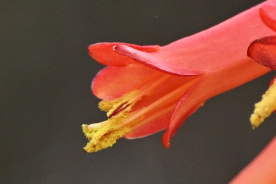 花は長さ4~5㎝の筒状で先が小さく5裂しています。