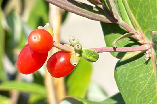 ツキヌキニンドウ(ハニーサックル)が属するスイカズラ属の植物にはツル性木本と低木がありますが、低木ではヒョウタンボクなどが栽培されています。