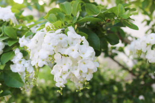 品種によっては刺があるものもあり、別名「ハリマツリ」の由来となっています。