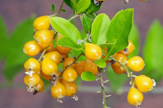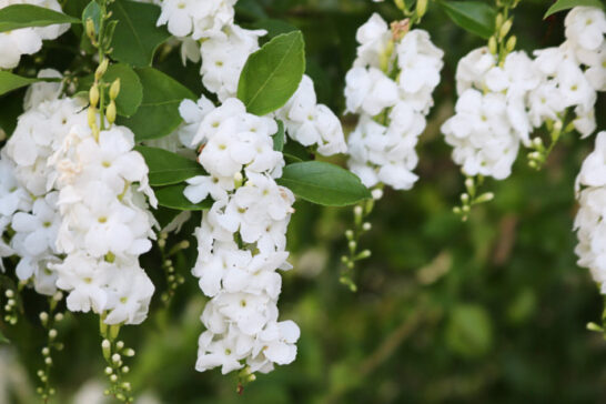デュランタは、北アメリカから南アメリカに分布するクマツヅラ科ハリマツリ属の常緑低木です。