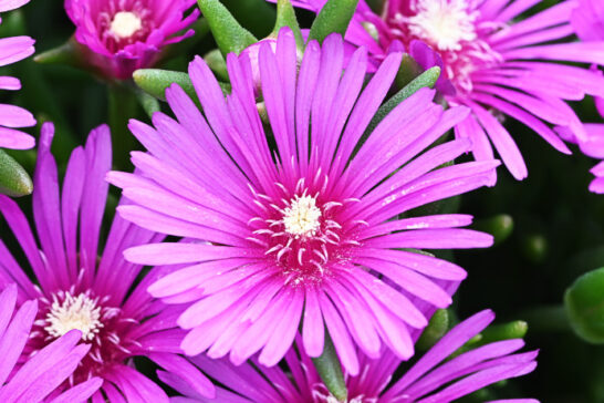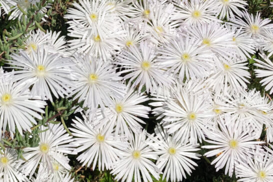 マツバギクが属するハマミズナ科は、亜熱帯地域を中心に約1800種が分布しています。 観賞用として栽培される種は多くありませんが、本種の他、以下のようなものがあります。