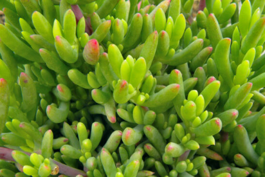 葉は多肉質で、品種により棒状のもの、やや幅のあるものなどがあります。