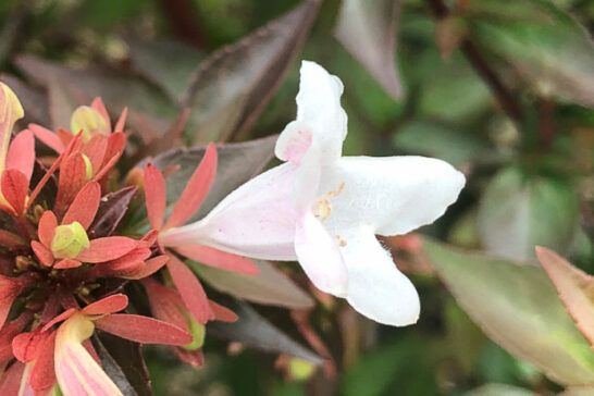 その2種の長所を合わせ持つのが園芸品種のアベリア(Abelia × grandiflora)です。